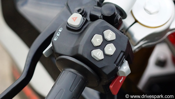 కొత్త ఆర్ఆర్ 310 ఇప్పుడు పూర్తిగా కొత్త బటన్లతో వస్తుంది మరియు హ్యాండిల్బార్లపై టోగుల్ స్విచ్లు కూడా ఉంటాయి. ఇన్స్ట్రుమెంట్ క్లస్టర్లో ప్రదర్శించబడే మొత్తం సమాచారాన్ని నియంత్రించడానికి టోగుల్ స్విచ్లను లెఫ్ట్ హ్యాండిల్బార్ కలిగి ఉంది. రైడర్స్ ఒకే స్విచ్లను ఉపయోగించి వేర్వేరు రైడింగ్ మోడ్ల మధ్య టోగుల్ చేయవచ్చు.