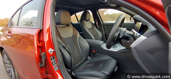 బిఎండబ్ల్యు ఎమ్340ఐ ఎక్స్డ్రైవ్ యొక్క క్యాబిన్ బిట్స్ మరియు బ్రష్ చేసిన సిల్వర్ మరియు అల్కాంటారా ముక్కలతో పూర్తిగా బ్లాక్ కలర్ లో ఉంటుంది. ఈ కారణంగా, క్యాబిన్ చాలా స్పోర్టిగా కనిపిస్తుంది. డోర్ ప్యానెల్స్పై మరియు డాష్బోర్డ్లో సాఫ్ట్-టచ్ మెటీరియల్ ఉపయోగించబడి ఉంటుంది. ఇందులో ఆండ్రాయిడ్ ఆటో మరియు ఆపిల్ కార్ప్లేలను కలిగి ఉన్న 10.25 ఇంచెస్ ఇన్ఫోటైన్మెంట్ సిస్టమ్ సెంటర్ స్టేజ్ లో ఉంటుంది. టచ్ చాలా అద్భుతంగా ఉంది, కావున తొందరగా రెస్పాండ్ అవుతుంది.