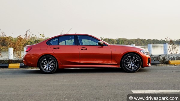 ఇక ఈ సెడాన్ యొక్క సైడ్ ప్రొఫైల్ విషయానికి వస్తే, ఇక్కడ మీ దృష్టిని ఆకర్షించే మొదటి విషయం ఫెండర్లోని చిన్న ఎమ్ బ్యాడ్జ్. ఇందులో ఉన్న 18 ఇంచెస్ మల్టీస్పోక్ అల్లాయ్ వీల్స్ M డివిజన్ నుండి వచ్చినవి. ఇవి డ్యూయల్-టోన్ కలర్లో పూర్తవుతాయి. చక్రాలు పూర్తిగా బ్లాక్ కలర్ లో ఉంటె చూడటానికి ఇంకా చాలా ఆకర్షణీయంగా ఉండేది. ఎందుకంటే కారు యొక్క సన్సెట్ ఆరెంజ్ కలర్ లో ఉంది కావున బ్లాక్ కలర్ ఇంకా ఆకర్షణీయంగా ఉంటుంది.