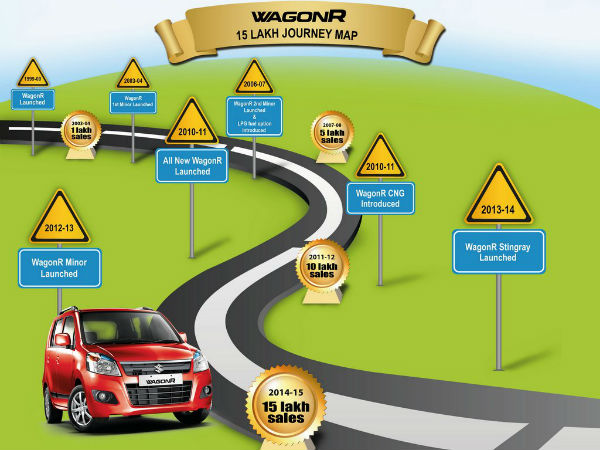 దేశీయ విపణిలో ఇప్పటి వరకూ 15 లక్షల యూనిట్లకు పైగా వ్యాగన్ఆర్ కార్లు అమ్ముడుపోయాయి. ఈ సందర్భంగా, కంపెనీ వైస్ ప్రెసిడెంట్ (మార్కెటింగ్) మనోహర్ భట్ మాట్లాడుతూ.. వినియోగదారుల అభిరుచులకి అనుగుణంగా ఎప్పటికప్పుడు ఈ మోడల్లో మార్పులు, చేర్పులు చేయడం మరియు విజయవంతమైన మార్కెటింగ్ విధానాల ద్వారా ఈ మైలురాయిని సాధించగలిగామని అన్నారు.