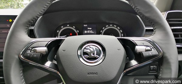 ఇందులో ఉన్న 2 స్పోక్ స్టీరింగ్ వీల్ ఆక్టేవియా నుండి తీసుకోబడింది, ఇది చాలా ఫాన్సీగా కనిపిస్తుంది. ఇందులోని స్టీరింగ్ రెస్పాన్స్ కూడా అద్భుతంగా ఉంది. అంతే కాదు ఇది త్వరగా రెస్పాండ్ అవుతుంది. స్టీరింగ్ తక్కువ వేగంలో తేలికగా మరియు అధిక వేగంలో కొంచెం బరువుగా అనిపిస్తుంది.