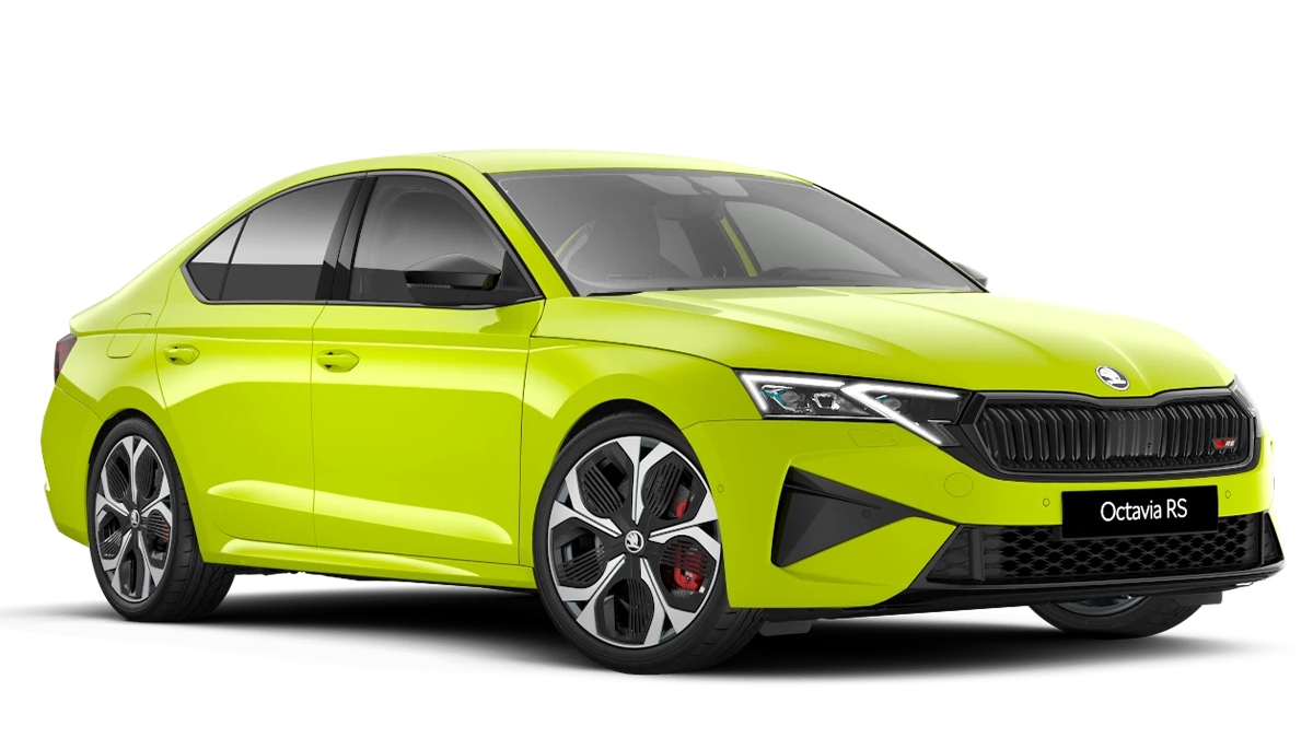 Octavia RS నల్లటి గ్రిల్, గ్లోస్ బ్లాక్ స్ప్లిటర్, సిగ్నేచర్ స్కోడా హుడ్ లైన్లతో కూడిన ఒక ఆకర్షణీయమైన రూపాన్ని కలిగి ఉంది. VRS, స్కోడా బ్యాడ్జ్లు నల్ల రంగులో కొత్త లోగోను కలిగి ఉంది, ఇది దాని స్పోర్టీ రూపాన్ని పెంచుతుంది. ఫ్రంట్ రాడార్, కెమెరా లెవెల్ 2 అడ్వాన్స్డ్ డ్రైవర్ అసిస్టెన్స్ సిస్టమ్స్ (ADAS)కు మద్దతు ఇస్తుంది. ఈ కారు ఐదు రంగులలో మంబా గ్రీన్, రేసింగ్ బ్లూ, బ్లాక్, వైట్, వెల్వెట్ రెడ్లలో లభిస్తుంది.