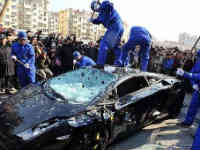 ఇంజన్ లోపాన్ని సరిచేసే సమయంలో కారు బంపర్, ఛాస్సిస్లు కొద్దగా డ్యామేజ్ అయ్యాయి. అస్సలే ముచ్చటపడి కోట్లు వెచ్చించి కొన్న కారాయే. లోపం సరికాకపోగా.. కొత్త సమస్య తలెత్తడంతో చిర్రెత్తిన సదరు కారు యజమాని లాంబోర్గిని కంపెనీ అధికారులతో వాగ్వివాదానికి దిగారు. ఈ విషయంపై కంపెనీ స్పందన నచ్చకపోవడంతో కోట్లు విలువ చేసే గల్లార్డో కారును పబ్లిక్గా కూలీ మనుషులను పెట్టించి బలమైన సుత్తులతో పచ్చడి పచ్చడి చేయించి కంపెనీ పట్ల తన నిరసన వ్యక్తం చేశాడు. దీనికి సంబంధించిన వీడియోలను చైనా టెలివిజన్ ఛానెల్ ప్రచారం చేసింది.