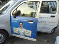 అయితే.. ఇక్కడ ప్రకటనలు సిటీ బస్సులపై కాదండోయ్.. సిటీలో సంచరించే కార్లపై. కార్లపై అడ్వర్టయిజింగ్లు ఇచ్చే కంపెనీలు ప్రస్తుతం బోలెడు ఉన్నాయి. క్యాష్డ్రైవ్, కార్పైసా, అటోమీటర్ వంటి ఎన్నో కంపెనీలు వ్యాపార ప్రకటనల కోసం కార్లపై స్థలాన్ని కొనుగోలు చేస్తున్నాయి. నగరాల్లో సంచరించే కార్లపై వ్యాపార ప్రకటన ఉండడం మూలంగా అది ఎక్కువమంది దృష్టిని ఆకర్షించి, సదరు ఉత్పత్తికి సంబంధించిన సమాచారం వేగంగా ప్రజల్లోకి వెళ్తుందని ఆ కంపెనీల అభిప్రాయం. ఇలా కార్లపై ప్రకటనలు చేయడం వల్ల వివిధ కంపెనీల ఉత్పత్తులకు ప్రచారం కావడంతో పాటు కారు ఓనర్లకు ప్రతి నెలా కొంత సొమ్ము అందుతుంది.