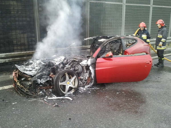 ఓ ఎరుపు రంగు ఫెరారీ ఎఫ్ఎఫ్ కారు పోలండ్లోని పోలిష్ ఏ4 హైవేపై వెళ్తుండగా ఈ అగ్ని ప్రమాదం సంభవించింది. అదృష్టవశాత్తు ఈ ప్రమాదంలో డ్రైవర్కు ఎలాంటి గాయాలు కాలేదు. వేగంగా వెళ్తున్న కారులో ఉన్నట్టు పొగ రావటంతో కారును పక్కకు నిలిపి ఫైర్ స్టేషన్కు ఫోన్ చేశానని, ఫైర్ డిపార్ట్మెంట్ వాళ్లు వచ్చే కారు ఇంటీరియర్స్తో పాటుగా, రూఫ్ పిల్లర్తో సహా దాదాపుగా కాలిపోయిందని డ్రైవర్ పేర్కొన్నాడు.
