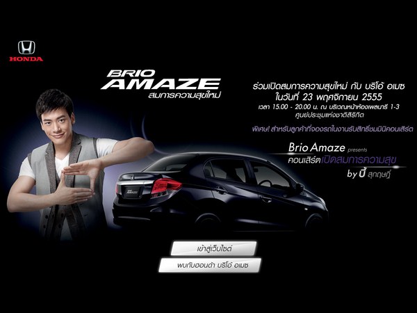 బ్రయో హ్యాచ్బ్యాక్ ఫ్లాట్ఫామ్ ఆధారంగా హోండా అభివృద్ధి చేసిన అమేజ్ సెడాన్ను ఈనెల 23న థాయ్లాండ్ మార్కెట్లో కంపెనీ విడుదల చేయనుంది.