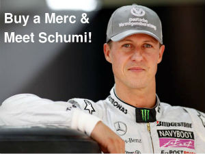 సెప్టెంబర్ 1, 2012 నుంచి ప్రారంభమైన ఈ క్యాంపైన్ అక్టోబర్ 15, 2012 వరకూ కొనసాగుతుంది. ఈ క్యాంపైన్లో భాగంగా, త్రీ పాయింటెడ్ స్టార్ను కొనుగోలు చేసే కస్టమర్లకు మెర్సిడెస్ బెంజ్ ఇండియా రేసింగ్ వరల్డ్ స్టార్ మైఖేల్ షుముఖర్ను కలుసుకునే అవకాశాన్ని కల్పిస్తుంది.