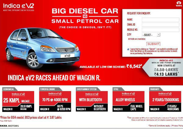 టాటా ఇండికా ఈవి2 డీజిల్ ధరలో రూ.45,000 కోత!