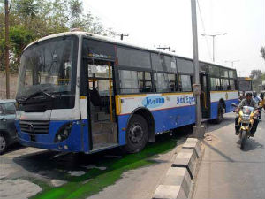 ఇలాంటి రద్దీ పరిస్థితుల్లో వాహనం నడపాలంటే ఎంతో మెళకువ కావాలి. అలా కాకుండా ఇష్టం వచ్చినట్లు మితి మీరిన వేగంతో వాహనాలు నడిపితే ఆ తర్వాత భారీ మూల్యమే చెల్లించాల్సి వస్తుంది. డ్రైవర్ నిర్లక్ష్యం వల్లనో లేక రోడ్డుపై వెళ్లే ఇతర వాహన చాలకుల తప్పిదాల కారణంగా నగరంలో ఏదో ఒకచోట రోడ్డు ప్రమాదం జరుగుతూనే ఉంది. ఇందుకు ప్రత్యక నిదర్శనమే ఈ చిత్రం. అతివేగంతో వచ్చిన ఏపిఎస్ఆర్టీసీ బస్సు ఎలా డివైడర్పైకి ఎక్కి కూర్చుందో చూడండి.