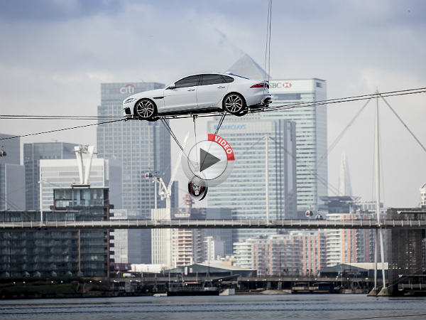 బ్రిటీష్ లగ్జరీ కార్ కంపెనీ జాగ్వార్ తయారు చేసిన సరికొత్త 'జాగ్వార్ ఎక్స్ఎఫ్' (Jaguar XF) సెడాన్ విడుదలను వినూత్న రీతిలో నిర్వహించింది. లండన్లోని థేమ్స్ నదికి ఇరువైపులా భారీ క్రేన్లను ఉంచి, వాటికి బిగించిన తాళ్లపై ఈ జాగ్వార్ కారును నడుపుతూ, అందరినీ ఆశ్చర్యానికి గురిచేసింది.