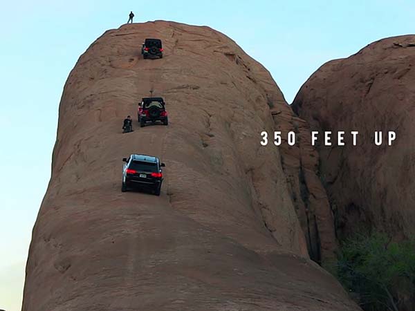 350 అడుగుల కొండను నిటారుగా ఎక్కిన మూడు జీపులు