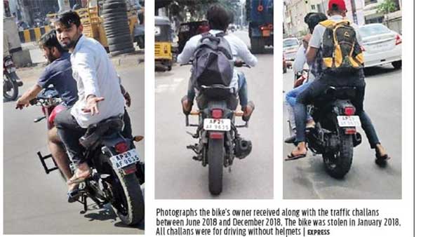 "జనవరి 2018 లో బైక్ దొంగతనం చేసిన తరువాత కుషాయిగూడ పోలీస్ స్టేషన్ లో ఫిర్యాదు చేశారు. కానీ ఇక్కడి పోలీసులు రిలాక్స్ గా ఉన్నారు. ఈ ఫిర్యాదు నమోదైన తర్వాత వివిధ ఉల్లంఘనులకు సంబంధించి ఆరు చలాన్లు జారీ చేశారు. వాటి చిత్రాలు కూడా ఉన్నాయి. చలానాలు బైక్ ఉన్నచోటికి చేరకుండా, ఓనర్ ఇల్లుకి చేరాయి."