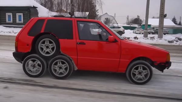 ఈ 8 చక్రాల కారుగా మార్పు రష్యాలో గ్యారేజ్ 54 చేత చేయబడింది. యునో కారు ఎనిమిది చక్రాలుగా మార్పు చెందింది అంటే ఇది చూడటానికి చాలా కొత్తగా మరియు పిచ్చిగా అనిపించవచ్చు. ఈ విధంగా మాడిఫై చేయడం కూడా కొంత కష్టంతో కూడుకున్న పని.