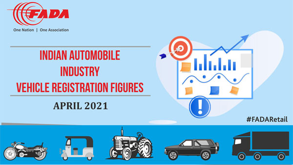 ఏప్రిల్ 2021 నెలలో రిజిస్టర్ అయిన ద్విచక్ర వాహనాలు , త్రిచక్ర వాహనాలు, నాలుగు చక్రాల వాహనాలు మరియు ప్రైవేటు, వాణిజ్య వాహనాల డేటాను ఫడా విడుదల చేసింది. గత నెలలో ద్విచక్ర వాహనాలు 27.63 శాతం, మూడు చక్రాల వాహనాలు 43.11 శాతం, ప్రయాణీకుల వాహనాలు 25.33 శాతం, ట్రాక్టర్లు 44.58 శాతం మరియు వాణిజ్య వాహనాల రిజిస్ట్రేషన్లు 23.65 శాతం క్షీణతను నమోదు చేశాయి.