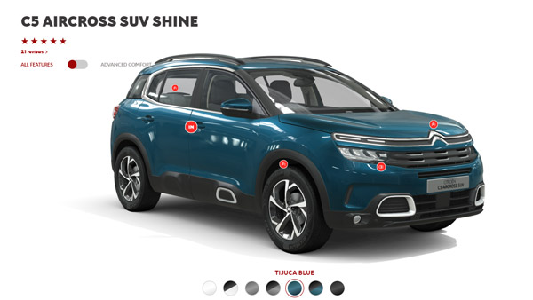 సిట్రోయెన్ వెబ్సైట్ను సందర్శించే వినియోగదారులకు కారు యొక్క అన్ని వివరాలను రికార్డ్ చేయబడిన వాయిస్ ద్వారా పూర్తి వివరంగా తెలియజేస్తారు. ఇందులో, కారును బహుళ కోణాల నుండి చూసే మరియు దాని గురించి మరిన్ని వివరాలను తెలుసుకునే ఆప్షన్ కూడా అందుబాటులో ఉంటుంది. ఇందులో, కారు ఎక్స్టీరియర్ ఫీచర్లను మాత్రమే కాకుండా ఇంటీరియర్ ఫీచర్లకు సంబంధించిన మొత్తం సమాచారాన్ని కూడా తెలియజేయబడుతుంది.
