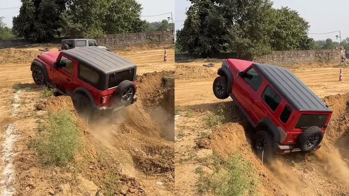 మారుతి జిమ్నీని ఆ ప్రాంతంలోకి తీసుకెళ్లాడు. ఈ SUV కూడా ఎటువంటి సమస్య లేకుండా గొయ్యి నుంచి బయటకు వచ్చింది. ఈ టాస్క్ తర్వాత మట్టి దిబ్బలను ఎక్కేందుకు ఈ రెండు ఎస్యూలను తీసుకెళ్లాడు. మహీంద్రా థార్ యొక్క తక్కువ బ్రేక్ ఓవర్ యాంగిల్ కారణంగా భూమిని తాకుతుంది. రెండుసార్లు ప్రయత్నం చేశాక.. సులభంగా గమ్యాన్ని చేరుకుంటుంది. మారుతి జిమ్నీ ఎలాంటి ఇబ్బందులు లేకుండా సులభంగా గమ్యం చేరుకుంటుంది.
