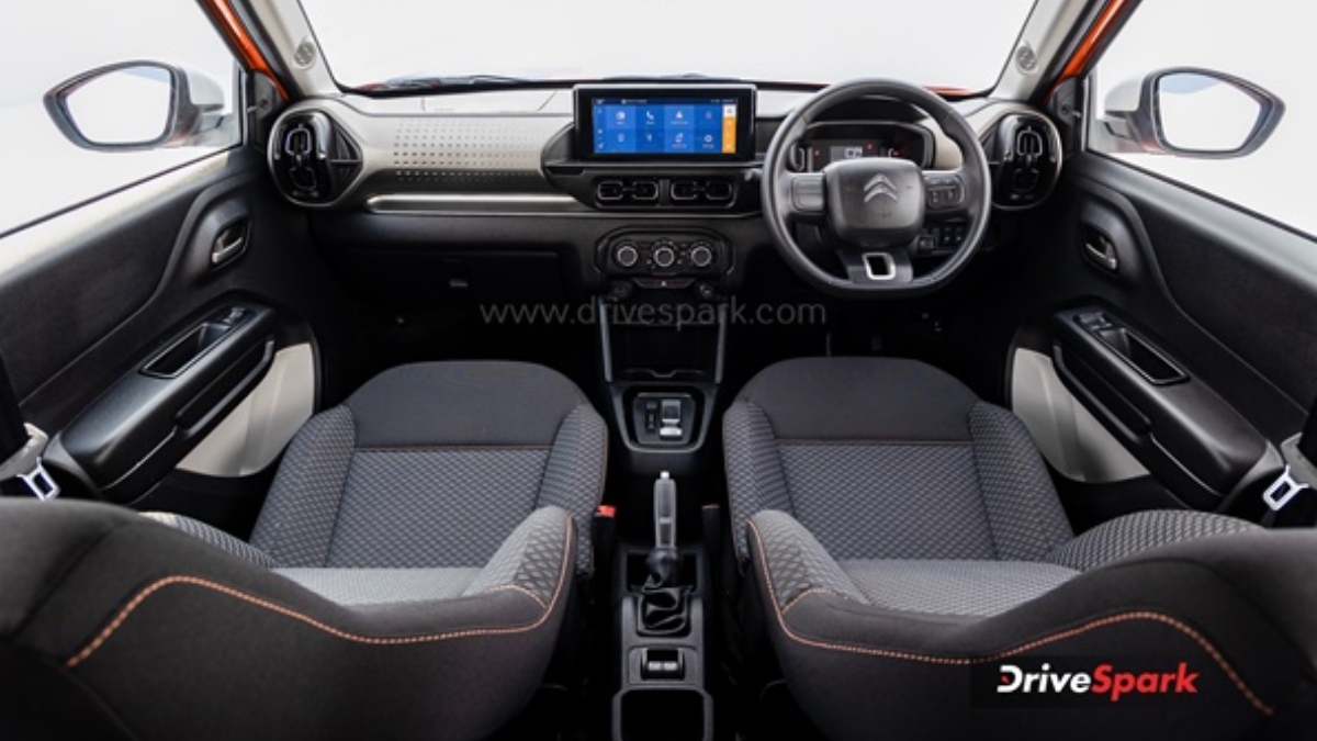 కారు లోపల సిట్రోయెన్ eC3 10.2-అంగుళాల టచ్స్క్రీన్ ఇన్ఫోటైన్మెంట్ సిస్టమ్, మాన్యువల్ AC, డిజిటల్ ఇన్స్ట్రుమెంట్ క్లస్టర్, స్మార్ట్ కనెక్టివిటీ ఫీచర్స్, ఎత్తు సర్దుబాటు చేయగల డ్రైవర్ సీటు, డ్యూయల్ ఫ్రంట్ ఎయిర్బ్యాగ్లు, EBDతో కూడిన ABS సిస్టం వంటివి ఈ కారులో ఉన్నాయి.