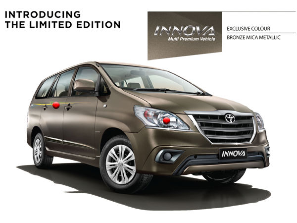 ప్రస్తుత పండుగ సీజన్ను పురస్కరించుకొని మరియు ఎమ్పివి (మల్టీ పర్సస్ వెహికల్) సెగ్మంట్లో పెరుగుతున్న పోటీని సమర్థవంతంగా ఎదుర్కునేందుకు గాను ఈ సెగ్మెంట్ లీడర్గా టొయోటా, తమ బెస్ట్ సెల్లింగ్ ఇన్నోవా ఎమ్పివిలో ఓ కొత్త లిమిటెడ్ ఎడిషన్ను పరిచయం చేసింది. పరిమిత సంఖ్యలో మాత్రం లభ్యం కానున్న ఈ 2014 టొయోటా ఇన్నోవా లిమిటెడ్ ఎడిషన్ రెగ్యులర్ ఇన్నోవా వేరియంట్ల కన్నా మరింత ప్రీమియంగా అనిపిస్తుంది.