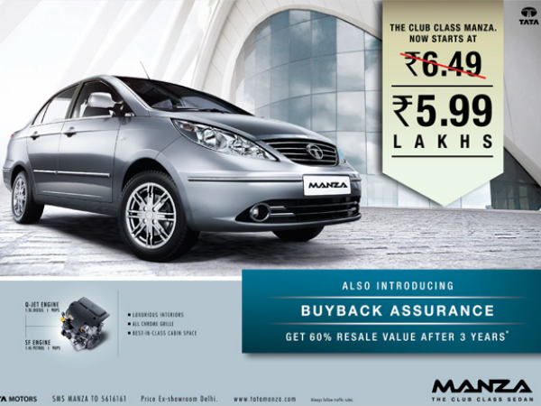 టాటా మాంజా క్లబ్ క్లాస్ డీజిల్ ఇప్పుడు రూ.5.99 లక్షలకే