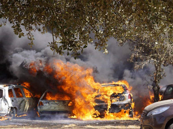 పార్కింగ్ లాట్లో పార్క్ చేసి ఉన్న కార్లు ఎండ వేడికి కాలిబూడిదయ్యాయి. ఎవరి ప్రయత్నం లేకుండానే భారీ ఎండవేడిమికి చెలరేగిన మంటలు ఒక కారుతో మొదలయ్యి మొత్తం 15 కార్లను బూడిద చేశాయి.