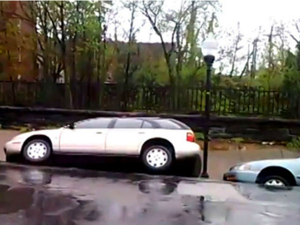 అలాంటి ఓ సంఘటననే ఈనాటి మన ఫేస్బుక్ వీడియో శీర్షికలో వీక్షిద్దాం రండి. బల్టిమోర్ అనే ప్రాంతంలో రోడ్డుకు పక్కగా పార్క్ చేసిన ఉన్న చాలా కార్లు ఒక్కసారిగా నేలలోకి కూరుకుపోయాయి. రోడ్డుకు అవతలివైపు లోయ ఉండటం, పైగా భారీ వర్షం పడి ఉండటం వలన రోడ్డు బాగా తడిసిపోయి, మెత్తబడటంతో రోడ్డులో కొంత భాగం అవతలివైపుకు ఒరిగిపోయింది.