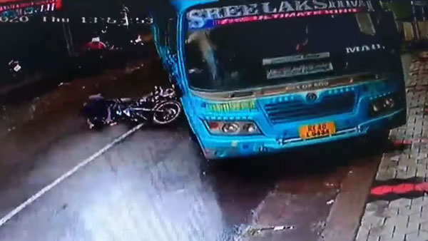 ఇటీవల కేరళలో ఒక బైక్ రైడర్ అనుకోకుండా పెను ప్రమాదం నుంచి బయటపడ్డాడు. ఈ సంఘటన యొక్క వీడియో సోషల్ నెట్వర్కింగ్ సైట్లలో వైరల్ అయ్యింది. వీడియోలో బైక్ రైడర్ ఒక పెద్ద ప్రమాదం నుండి తప్పించుకోవడం చూడవచ్చు. బస్సు డ్రైవర్ యొక్క చురుకుదనం కారణంగా బైక్ రైడర్ రక్షించబడ్డాడు.