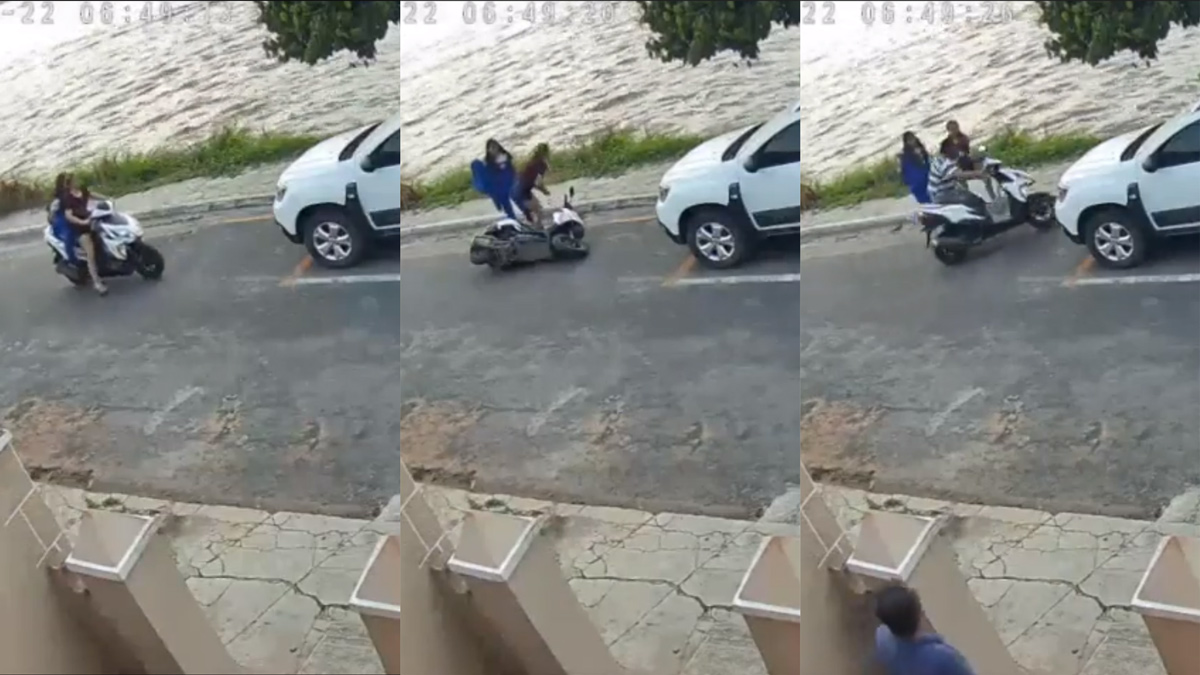 యువతులు కింద పడటం గమనించిన అక్కడున్న ఓ వ్యక్తి వారిని కాపేందుకు వారి దగ్గరకు వస్తారు. రోడ్డుపై పడిపోయిన స్కూటర్ను పైకి లేపేందుకు యత్నిస్తారు. అయితే యువతులు కిందకు దిగేముందు స్కూటర్ ఇంజిన్ ఆఫ్ చేయడం మర్చిపోయారు. దీంతో ఆ వ్యక్తి స్కూటర్ను పైకి లేపగానే.. అది ఆన్లో ఉండటంతో స్కూటర్తో పాటు అతను కూడా నేరుగా వెళ్లి పక్కనే ఉన్న నీటి గుంతలో పడిపోయాడు.