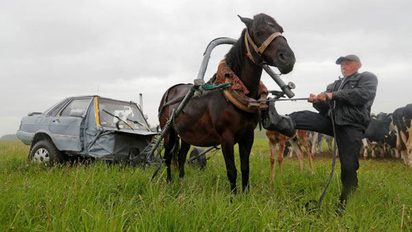 హార్స్పవర్లో ఎలక్ట్రిక్ లాంప్, బ్యాటరీ అమర్చారు. రాయిటర్స్ సైట్ ద్వారా విడుదల చేసిన ఈ సవరించిన కారు ఫోటోలు ఇంటర్నెట్లో వైరల్ అయ్యాయి. గతంలో కూడా ఈ వాహనాలు ఏవీ సవరించబడలేదు. గుర్రాన్ని పైకి లాగడానికి కారును మెటల్ రాడ్లతో అమర్చారు.