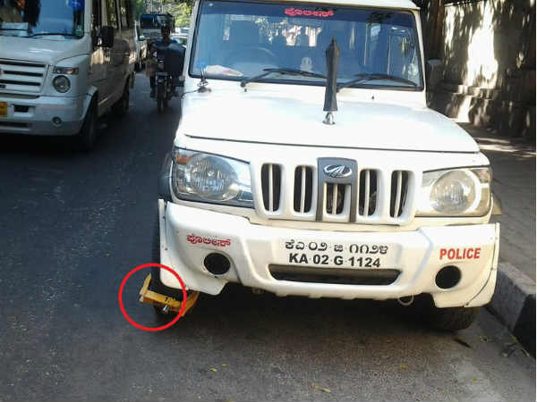 బెంగుళూరు ట్రాఫిక్ పోలీసులకు నిజంగా హ్యాట్సాఫ్ చెప్పాలి. చట్టానికి ఎవ్వరు అతీతుల కారని చెప్పేందుకు సజీవ నిదర్శనమే ఈ చిత్రం. నో పార్కింగ్ ప్రదేశంలో పార్క్ చేసి ఉన్న ప్రభుత్వ వాహనాన్ని బెంగుళూరు ట్రాఫిక్ పోలీసులు ఇనుప లాక్తో లాక్ చేశారు. చట్టం ముందు ప్రజలు, ప్రభుత్వం ఇద్దరు సమానమే అంటూ రద్దీగా ఉండా ప్రాంతంలో రోడ్డుపై వదిలి వెళ్లిపోయిన పోలీసు అధికారిక వాహనాన్ని ముందుకు కదలకుండా ఉండేలా లాక్ చేశారు ట్రాఫిక్ పోలీసులు.