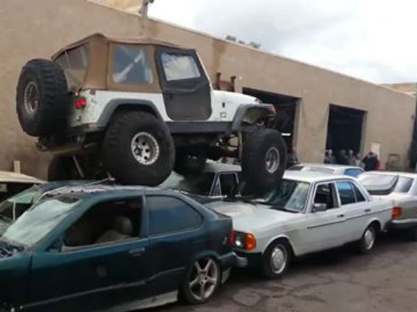 చూసేవారికి ఈ స్టంట్ ఏదో సినిమాల్లో చూసినట్లుగా అనిపిస్తుంది. అయితే, ఇక్కడ కేవలం ఆఫ్-రోడర్ వాహన సామర్థ్యాన్ని వివరించేందుకు, ట్రాఫిక్ జామ్లను ఇలాంటి వాహనాలతో ఎలా అధిగమించవచ్చనే ఉదహరించేందుకు మాత్రమే వీళ్లు ఓ క్లోజ్డ్ ప్రాంతంలో ఈ స్టంట్ చేశారు. ఇందులో ఉపయోగించిన కార్లన్నీ కూడా పనికి రానివి, పాతవి. ఈ వీడియో చూసి మీరు కూడా ట్రాఫిక్ జామ్పై చిరాకు తెచ్చుకొని ఇలాంటి ప్రయత్నం మాత్రం చేయకండే.. సరదా కోసం ఈ వీడియోని చూడండి.