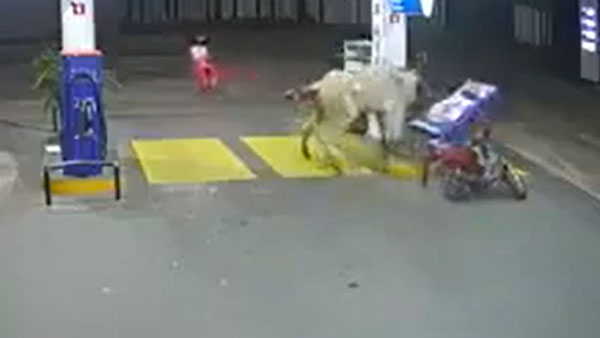 బైక్ పై వచ్చిన యువకులు చాలా అప్రమత్తంగా ఉండటం వల్ల ఈ ప్రమాదం నుంచి తప్పించుకున్నారు. కానీ ఆవు ఎదురుగా ఉన్న పెట్టెను గుద్దింది. ఈ సంఘటన జరిగినప్పుడు గ్యాస్ స్టేషన్ వద్ద ఎవరూ లేకుండా ఉండటం వీడియోలో చూడవచ్చు.