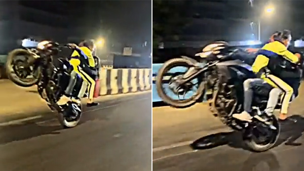 సామాజిక కార్యకర్త ముస్తాక్ అన్సారీ ఈ స్టంట్ వీడియోను తన ట్విట్టర్ ఖాతాలో పోస్ట్ చేశాడు. ముంబైలోని పబ్లిక్ రోడ్లపై ఎలాంటి రక్షణ కవచం లేకుండా ప్రమాదకర విన్యాసాలు చేస్తున్న బైకర్ల వీడియోలను అన్సారీ పోస్ట్ చేశారు. ఒక మహిళ ఇంధన ట్యాంక్పై కూర్చొని, మరొకరు పిలియన్పై కూర్చుండగా రైడర్ ముందు వీల్ ని పైకి లేపుతున్న విన్యాసాలు వీడియోలో గమనించవచ్చు.