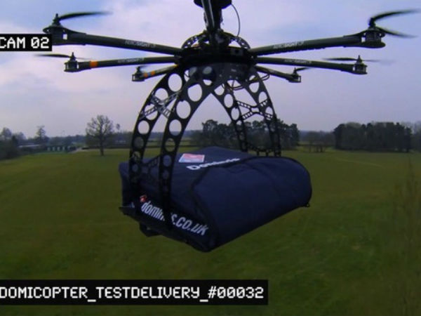 ప్రముఖ ఇంగ్లీష్ క్రియేటివ్ ఏజెన్సీ టి ప్లస్ బిస్కట్స్ (T + Biscuits) ఈ వినూత్నమైన ఐడియాకు ప్రాణం పోసింది. 'డొమికాప్టర్' (DomiCopter)గా పిలువబడే ఈ ప్రోటోటైప్ ప్రస్తుతం రెండు లార్జ్ పిజ్జాలను స్టోర్ నుంచి 6 కిలోమీటర్ల దూరంలో ఉండే ప్రదేశానికి కేవలం పది నిమిషాల్లోనే డెలివరీ చేయగలదు.