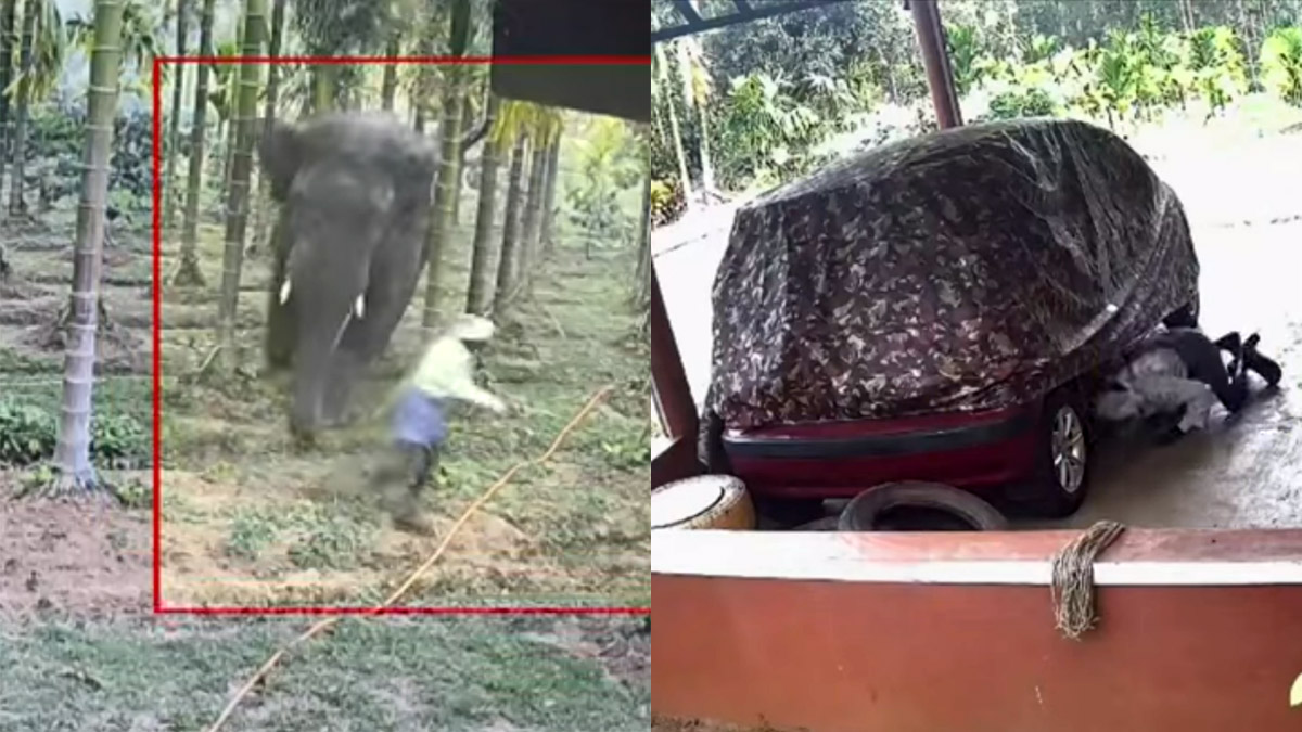 అడవి ఏనుగు దాడి! నేర్పుగా తప్పినందుకున్న రైతు - వీడియో చూడండి