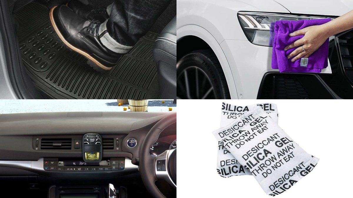 సిలికా జెల్ : సిలికా జెల్ ప్యాకెట్లు మార్కెట్లో చాలా సులభంగా అందుబాటులో ఉంటాయి. ఈ ప్యాకెట్లు కారులో ఉన్న తేమను గ్రహించి, కారు లోపల భాగం ఎలాంటి తేమ మరియు చెడు వాసన రాకుండా చూస్తాయి.