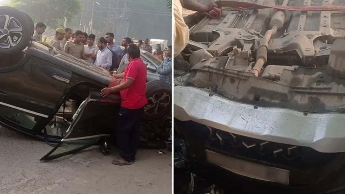అయినా హ్యుందాయ్ i20 కారు వేగంగా వచ్చి టాటా నెక్సాన్ వాహనాన్ని (hyundai i20 hatchback crashed Tata nexon ) ఢీకొట్టింది. దీంతో నియంత్రణ కోల్పోయిన టాటా నెక్సాన్ కారు అక్కడికక్కడే బోల్తా పడింది. కారులోని ప్రయాణికులు సురక్షితంగా బయటపడ్డారు.