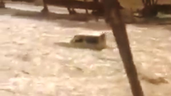 కారు నీటి ప్రవాహంతో పాటు వెళుతుంది. నీరు దానితో పాటు కారును మోస్తున్నట్లు అనిపిస్తుంది. నీటి ప్రవాహం చాలా ప్రమాదకరమైనది, ఎందుకంటే కారు నీటిలో ఎప్పుడైనా మునిగిపోయే అవకాశం ఉంది. నీటి ప్రవాహంతో పాటు కారు కూడా ముందుకు కదులుతోంది.