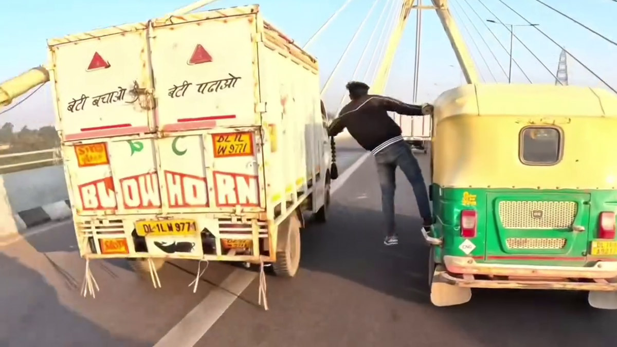 అయితే అంతలో అటుగా సైకిల్పైన ప్రయాణిస్తున్న ఓ వ్యక్తిని ఢీకొనడం గమనించవచ్చు. దీంతో సైకిల్పైన ప్రయాణం చేస్తున్న వ్యక్తి కిందపడిపోవడం గమనించవచ్చు. చిన్నపాటి గాయాలు అయినట్లు తెలుస్తోంది. అయితే ఆటోపైనుంచి స్టంట్లు చేస్తున్న వ్యక్తి కనీసం తన వాహనం నిలపకుండా వెళ్లిపోవడం గమనించవచ్చు. ఈ ఘటన ఉత్తరప్రదేశ్లోని ఘజియాబాద్లో జరిగింది. ప్రస్తుతం సోషల్మీడియాలో వైరల్ అవుతోంది.