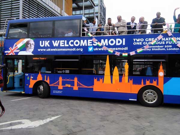 భారత్ను స్వాగతించిన లండన్: మోడి కోసం లండన్ ఎక్స్ప్రెస్ బస్సు.