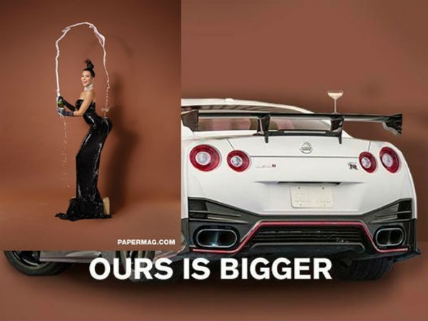 ఇదిలా ఉంటే, కిమ్ కర్ధాషియాన్ ఇంటర్నెట్ ట్రెండ్ను క్యాష్ చేసుకునేందుకు జపనీస్ కార్ కంపెనీ నిస్సాన్ తమదైన శైలిలలో ఓ ట్వీట్ చేసింది. కిమ్ కర్ధాషియాన్ బ్యాక్ కన్నా తమ కారు బ్యాకే చాలా పెద్దదని నిస్సాన్ జిటి-ఆర్ నిస్మో కారు ఫొటోతో కంపెనీ అఫీషియల్ ట్విట్టర్ హ్యాండిల్ నుంచి ట్వీ చేసింది. కిమ్ మాదిరిగానే ఈ కారు బ్యాక్పై కూడా షాంపైన్ గ్లాస్ ఉంచారు.