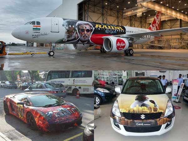 కబాలి ప్రభావం కేవలం కార్లను మాత్రమే కాదు విమానాలను కూడా తాకింది. రజనీకాంత్ విలన్ పాత్రలో నటిస్తున్న ఈ చిత్రానికి అఫీషియల్ పార్టనర్గా ఎయిర్ ఏషియాన విమానయాన సంస్థ చేతులు కలిపింది.
