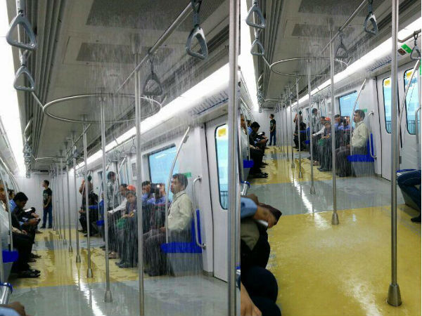 ముంబై మెట్రో రైలులో లీకేజ్ ప్రాబ్లం, షవర్ బాత్గా మారిన ట్రైన్