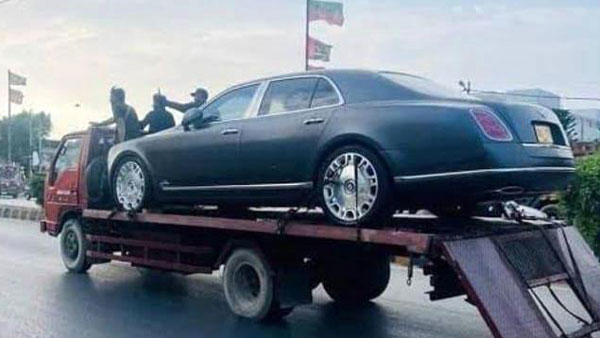 లండన్ నుండి పాకిస్థాన్ చేరుకున్న ఈ లగ్జరీ కారు ఓ ఇంటి ముందు పార్క్ చేసి, నల్లగుడ్డతో కప్పబడి ఉంది. కారుని నడపడానికి తాళాలు లేకపోవడంతో క్యారియర్ సాయంతో దానిని తరలించినట్టు కస్టమ్స్ అధికారులు తెలిపారు. ఆశ్చర్యకరమైన విషయం ఏమిటంటే, ఎటువంటి చట్టపరమైన పత్రాలు లేకపోయినప్పటికీ, ఈ కారు సింధ్ ప్రాంతంలో రిజిస్టర్ అయినట్లు చూపబడుతోంది. సాధారణంగా, ఇలాంటి ఇంపోర్టెడ్ కార్ల రిజిస్ట్రేషన్ కోసం విదేశీ వ్యవహారాల శాఖ మరియు కస్టమ్స్ అధికారుల అనుమతి కావాలి. అలాగే, దిగుమతి సుంకాలు మరియు రిజిస్ట్రేషన్ పన్నులు కూడా చెల్లించాల్సి ఉంటుంది.