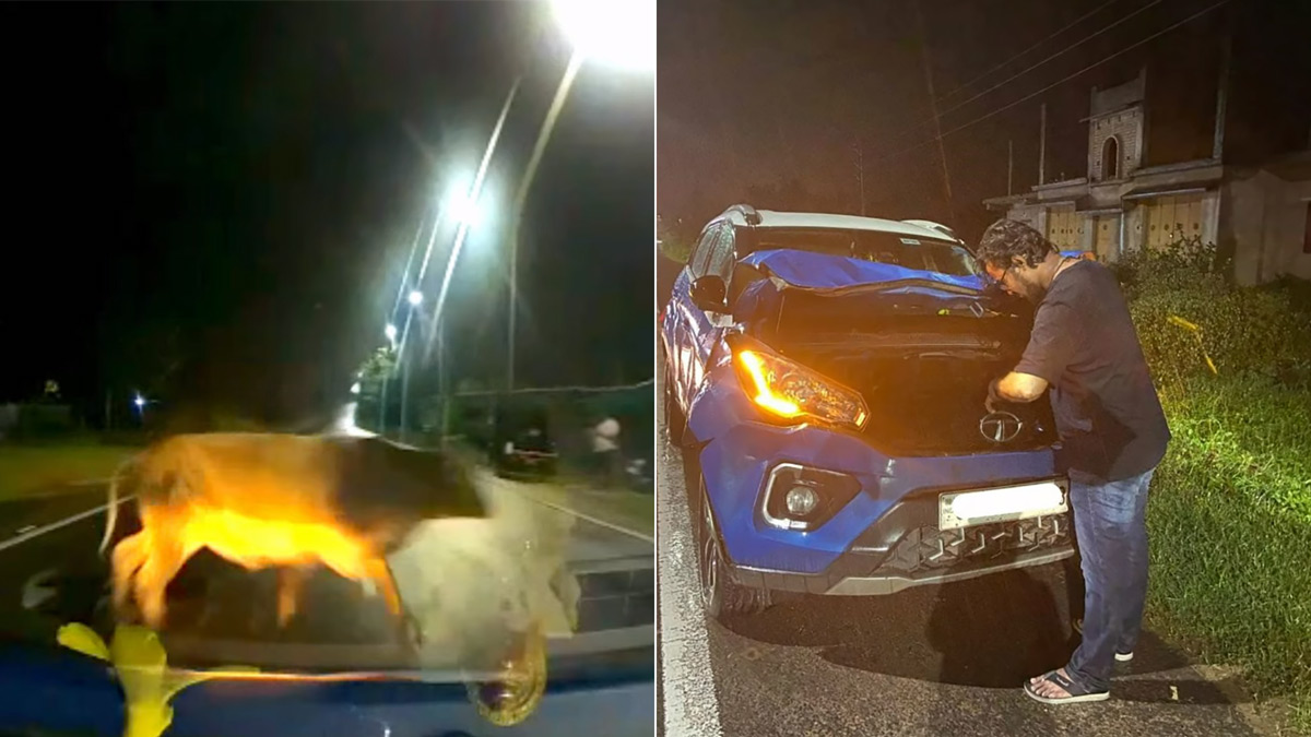 70 కి.మీ వేగంతో ఎద్దును ఢీకొట్టిన టాటా నెక్సాన్.. డ్యాష్ బోర్డు కెమెరాలో రికార్డయిన యాక్సిడెంట్ విజువల్స్