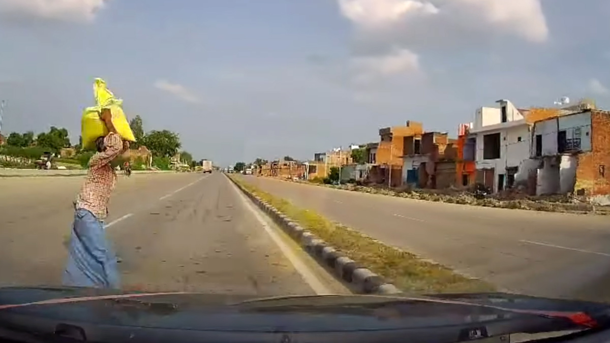 ఈ క్రమంలో టాటా నెక్సాన్ రోడ్డు దాటుతున్న వ్యక్తిని గమనించాడు. పాదచారి అప్పటికే రోడ్డు మధ్యలోకి వచ్చాడు. దీంతో డ్రైవర్ సమయస్ఫూర్తితో కారును వెంటనే కుడివైపునకు మళ్లించడంతో పెద్ద ప్రమాదం తప్పింది. లేదంటే 108 కి.మీ వేగంతో వెళ్తున్న కారు హఠాత్తుగా మనిషిని ఢీకొంటే తీవ్ర నష్టం వాటిల్లి ఉండేది. కారును కుడివైపునకు మళ్లించే క్రమంలో పాదచారిని కొద్దిగా ఢీకొనగా అతని భుజంపై బస్తా కిందపడింది.