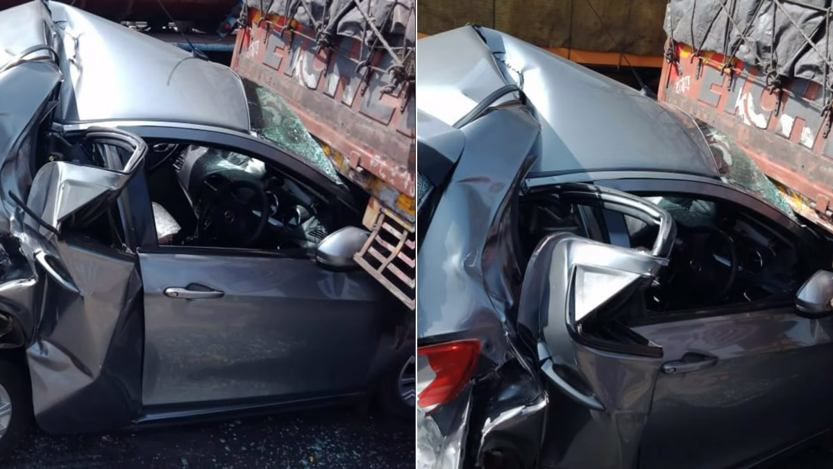 టాటా టియాగో కారు ముందు భాగం ట్రక్కులో ఇరుక్కుపోయింది. ట్రక్కు వెనుక భాగంలో అండర్రైడ్ గార్డ్ ఏర్పాటుచేయడం వల్ల కారు పూర్తిగా ట్రక్కు కిందకు వెళ్లిపోకుండా నిలిచిపోయింది. గతంలో ఇటువంటి ప్రమాదాల్లో అటువంటి గార్డ్ లేకపోవడం వల్ల కార్లు పూర్తిగా ట్రక్కు కిందకు వెళ్లిపోయిన ఘటనలు ఉన్నాయి. అటువంటి సమయాల్లో కారు డ్రైవర్ మరణించిన ఘటనలు ఉన్నాయి.