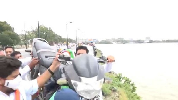ఇందులో భాగంగానే పెట్రోల్ మరియు డీజిలు ధర పెరుగుదలను నిరసిస్తూ హైదరాబాద్ యూత్ కాంగ్రెస్ కార్యకర్త నగరం నడిబొడ్డున ఉన్న హుస్సేన్ సాగర్ సరస్సులోకి బైక్ విసిరారు. ఈ సంఘటన సోషల్ మీడియాలో చాలా వైరల్ అవుతోంది. దేశవ్యాప్తంగా పెట్రోల్, డీజిల్ మరియు లిక్విడ్ పెట్రోలియం గ్యాస్ ధరల పెంపును ఖండిస్తూ ఈ విధంగా నిరసన వ్యక్తం చేశారు.