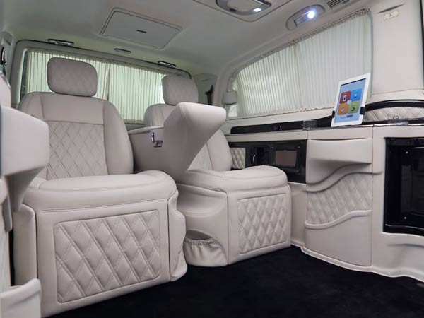 ఈ లగ్జరీ వ్యాను లోపల లైటింగ్ పెంచడం మరియు తగ్గించడం, సీట్ అడ్జెస్ట్మెంట్ వంటి వాటిని ట్యాబ్ ద్వారా నియంత్రించవచ్చు.