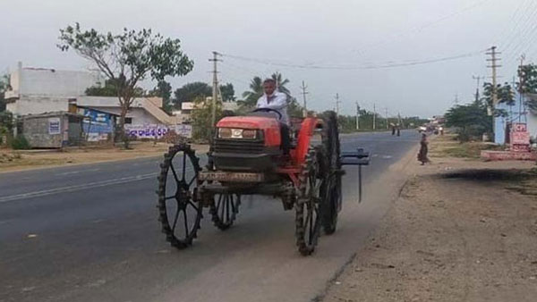 నివేదికల ప్రకారం, ఖమ్మం రూరల్ లోని మద్దులపల్లిలో టైర్లు లేని ట్రాక్టర్ ఒకటి కనిపించింది. ఒక రైతు ఖమ్మం వైపు నుంచి హైదరాబాద్ వేళ్లే రహదారిపై మంగళవారం సాయంత్రంఈ ట్రాక్టర్ను డ్రైవ్ చేసుకుంటూ వెళ్లారు. దీనికి టైర్లు లేదు, ఆ స్థానంలో ఎడ్బందికి ఉన్న చక్రాల మాదిరిగా ఉండే చక్రాలు ఉన్నాయి.