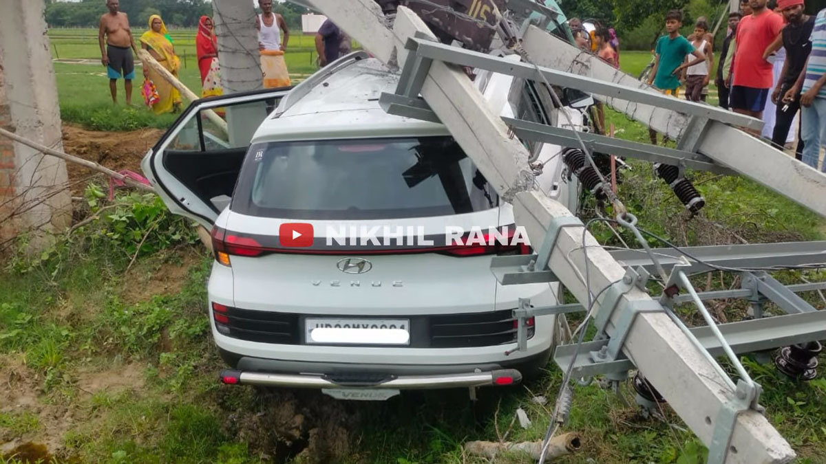 స్థానికుల కథనం ప్రకారం రాయ్బరేలీలోని ఓ రహదారిపై హ్యుందాయ్ వెన్యూ వాహనం వేగంగా ప్రయాణం చేస్తుంది. అకస్మాత్తుగా ఓ బైక్.. కారు ముందుకు వచ్చింది. దీంతో అప్రమత్తమైన హ్యుందాయ్ కారు డ్రైవర్.. బైక్ను ఢీకొట్టకుండా ఉండేందుకు తన వాహనాన్ని పక్కకు మళ్లించాడు. దీంతో హ్యుందాయ్ కారు రోడ్డు పక్కనున్న విద్యుత్ స్తంభాన్ని ఢీకొట్టింది.